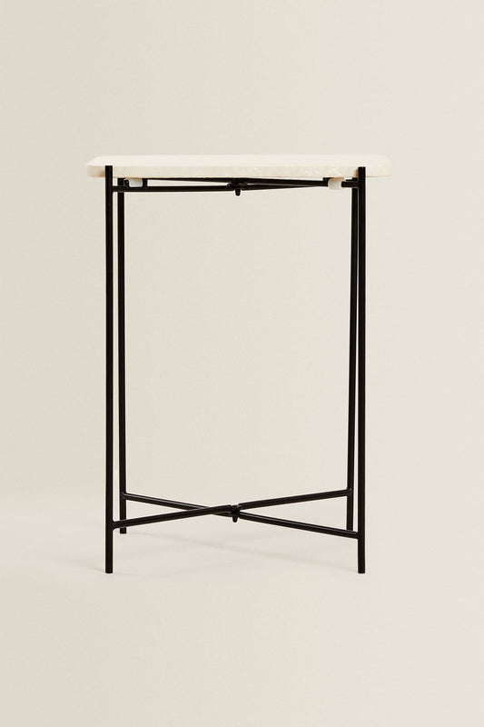 Side table, marble top, black metal leg