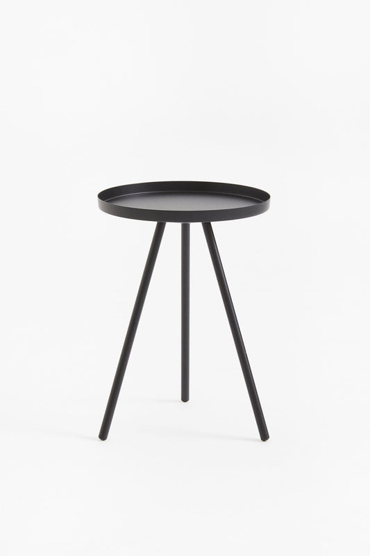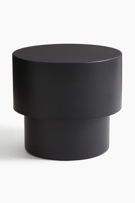 Side table, metal, contemporary cylindrical shape, black