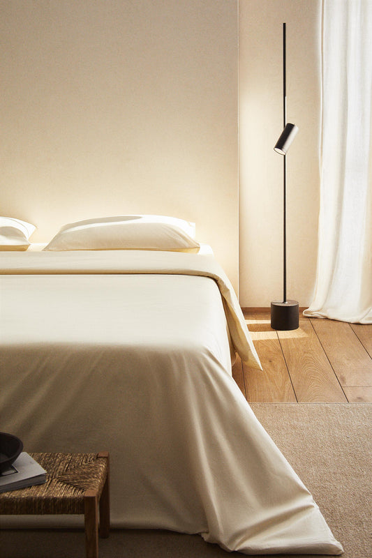 Sold outFloor lamp, metal stem, faded black