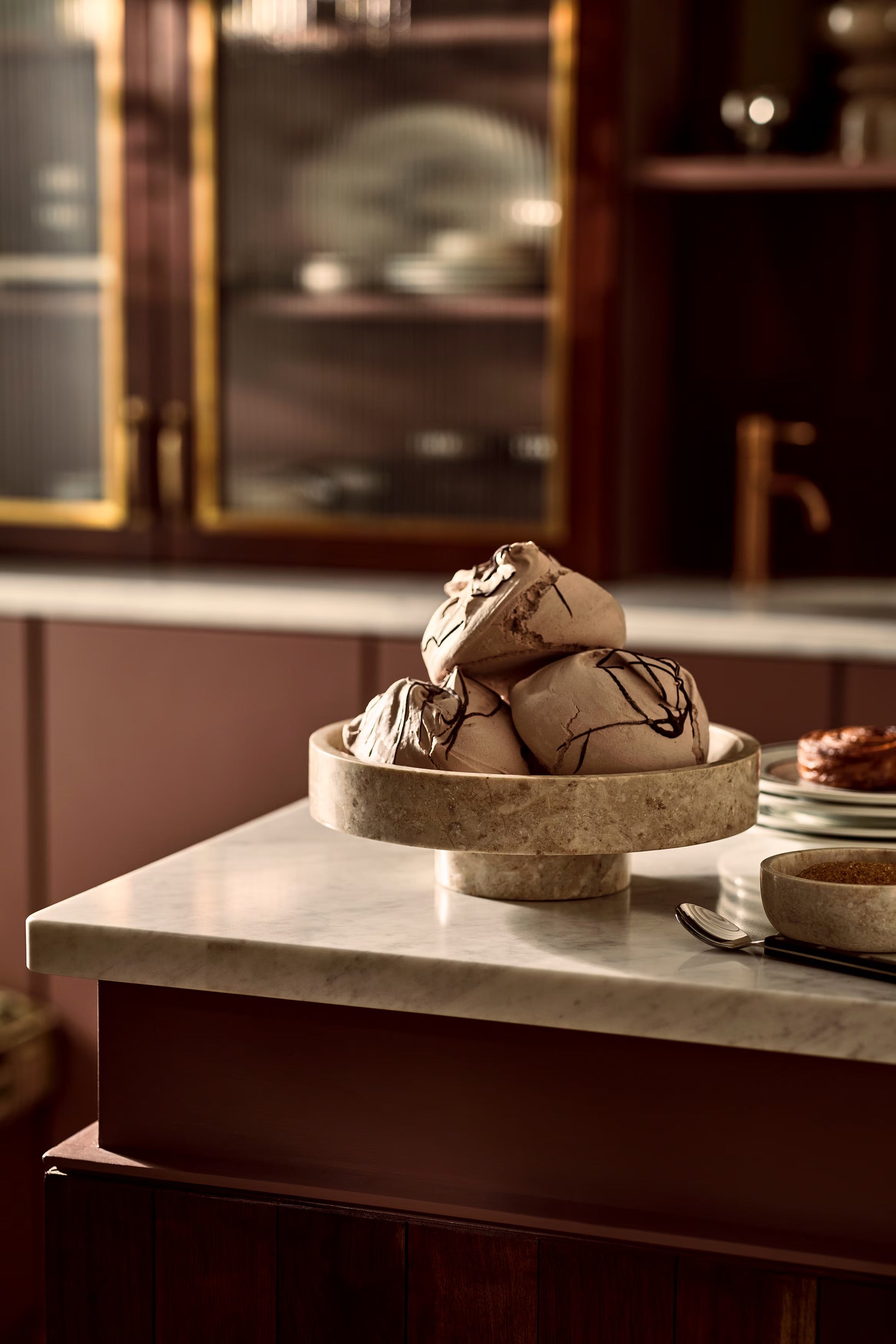 Decorative footed bowl crafted from marble with a high rim. A dignified centrepiece in its own right, this bowl is also a nice way to display fruit, flowers and other decorative arrangements. 3.1 x 9.8 " ( Height x Width).