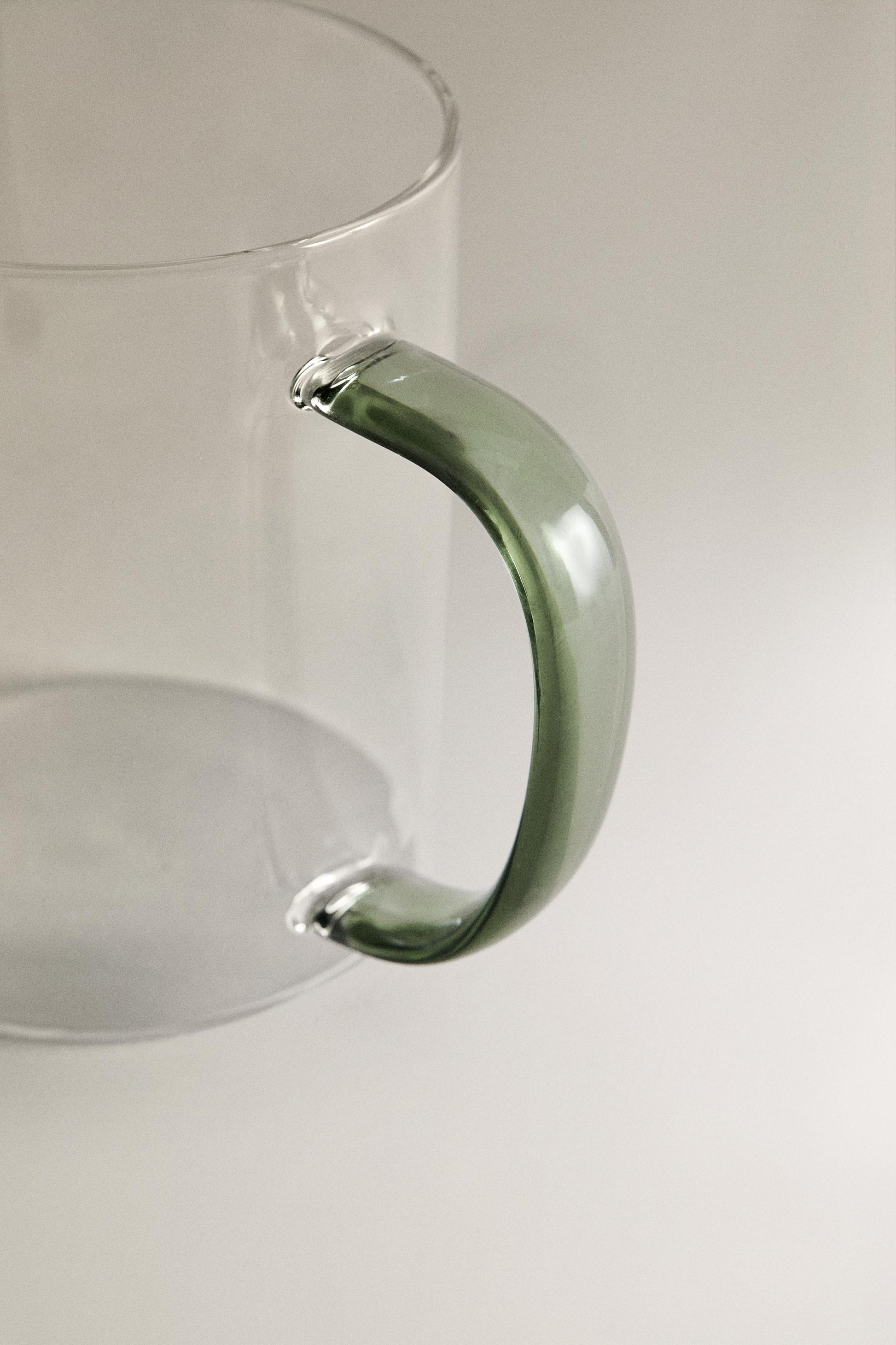 Drinkware, mug, borosilicate glass, colored handle, green