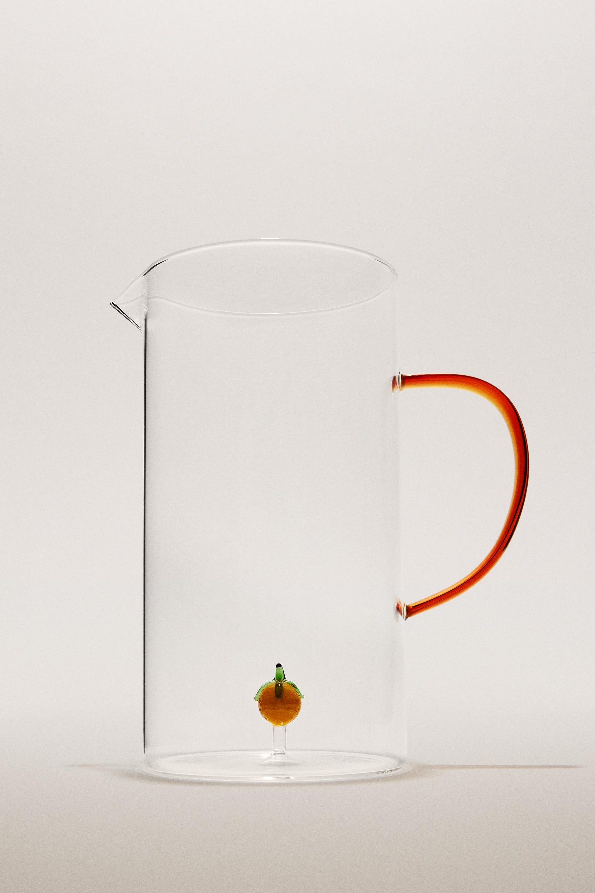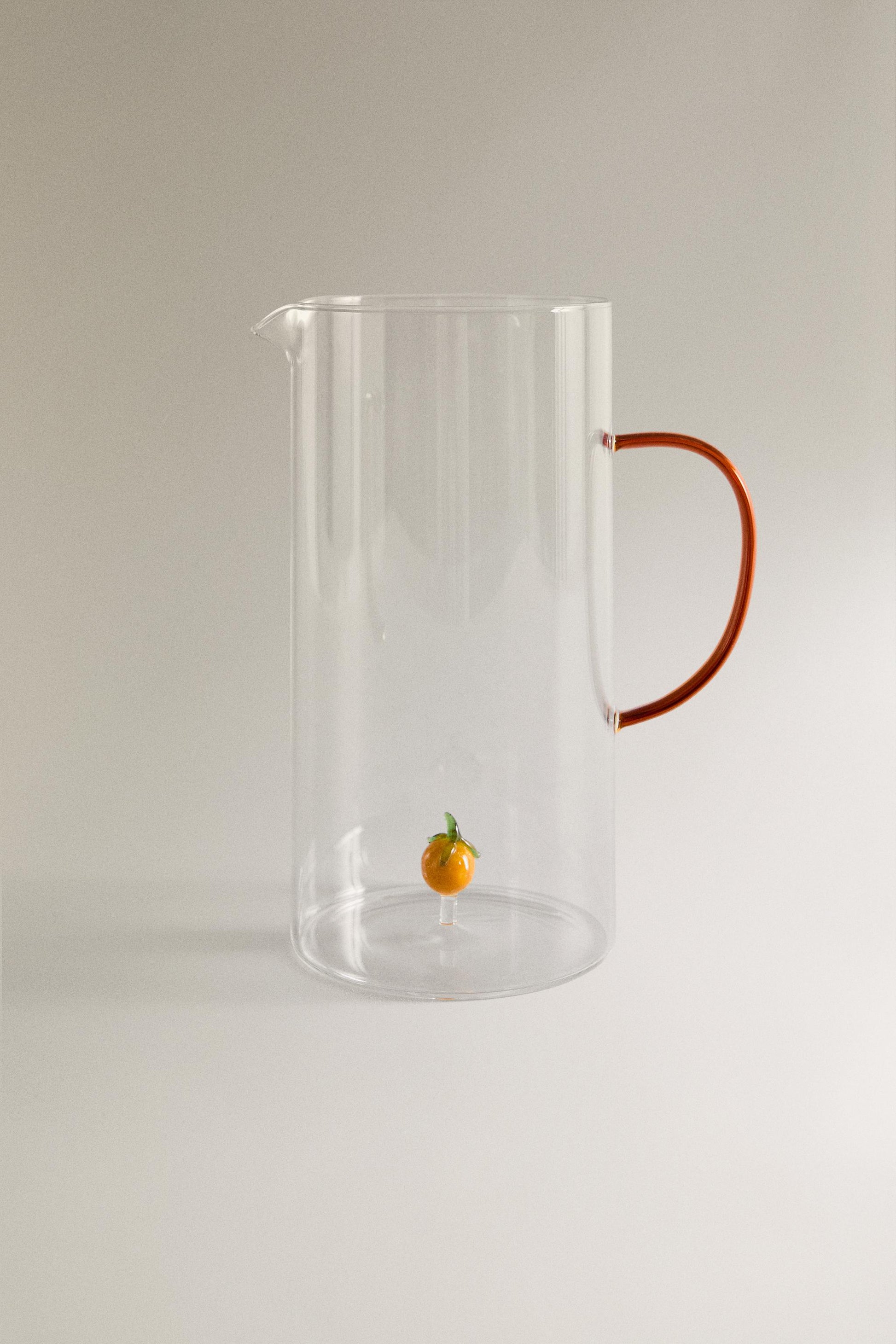 Drinkware, pitcher, borosilicate glass, orange figure inside