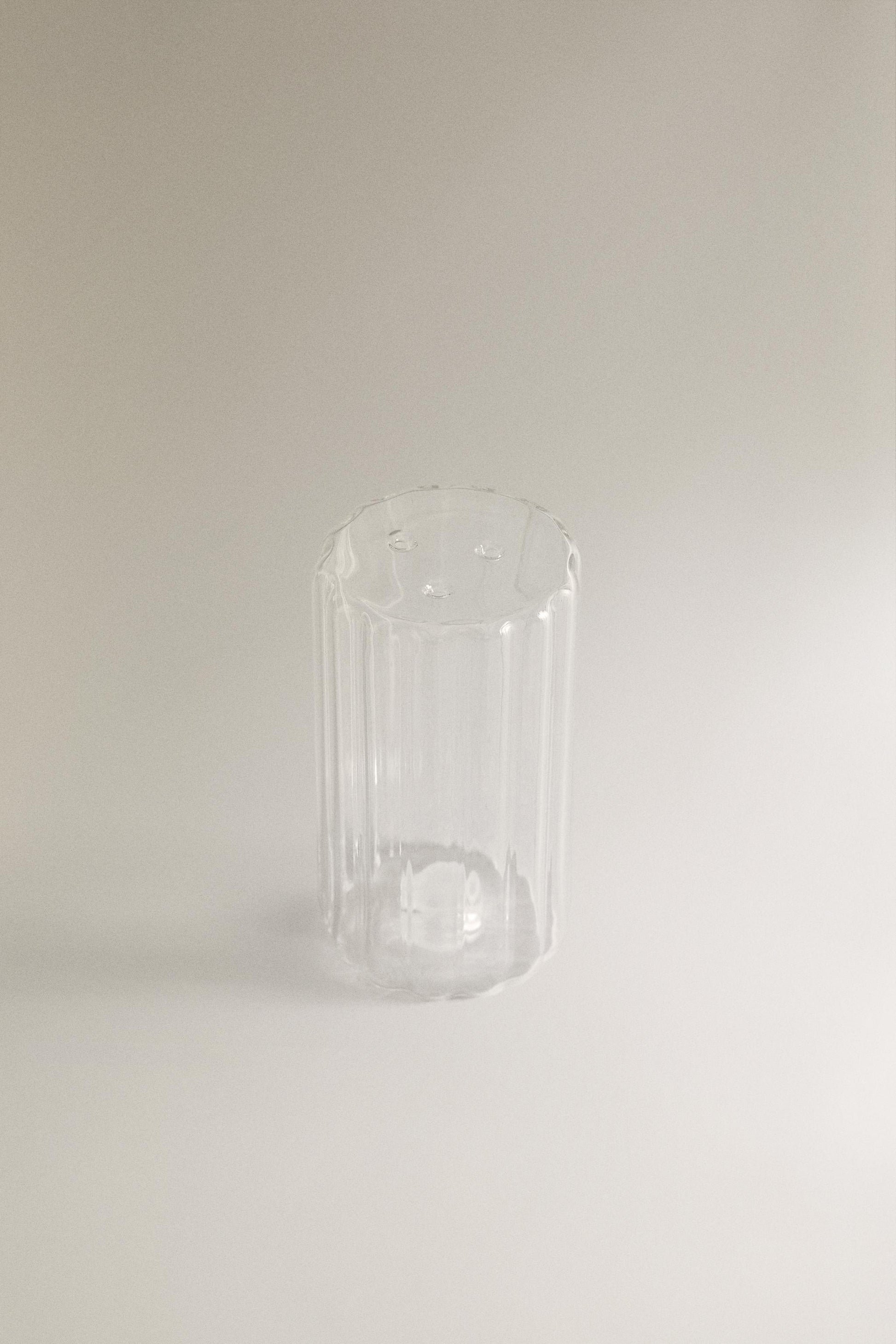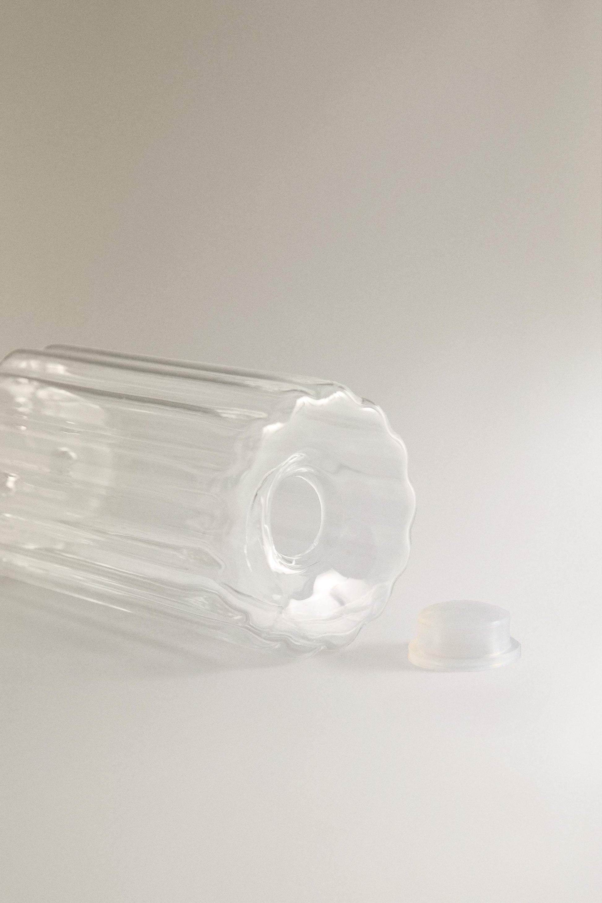Beveled borosilicate glass salt shaker. Silicone seal. 3.1 x 1.8 x 1.8 " (Height x Width x Depth).
