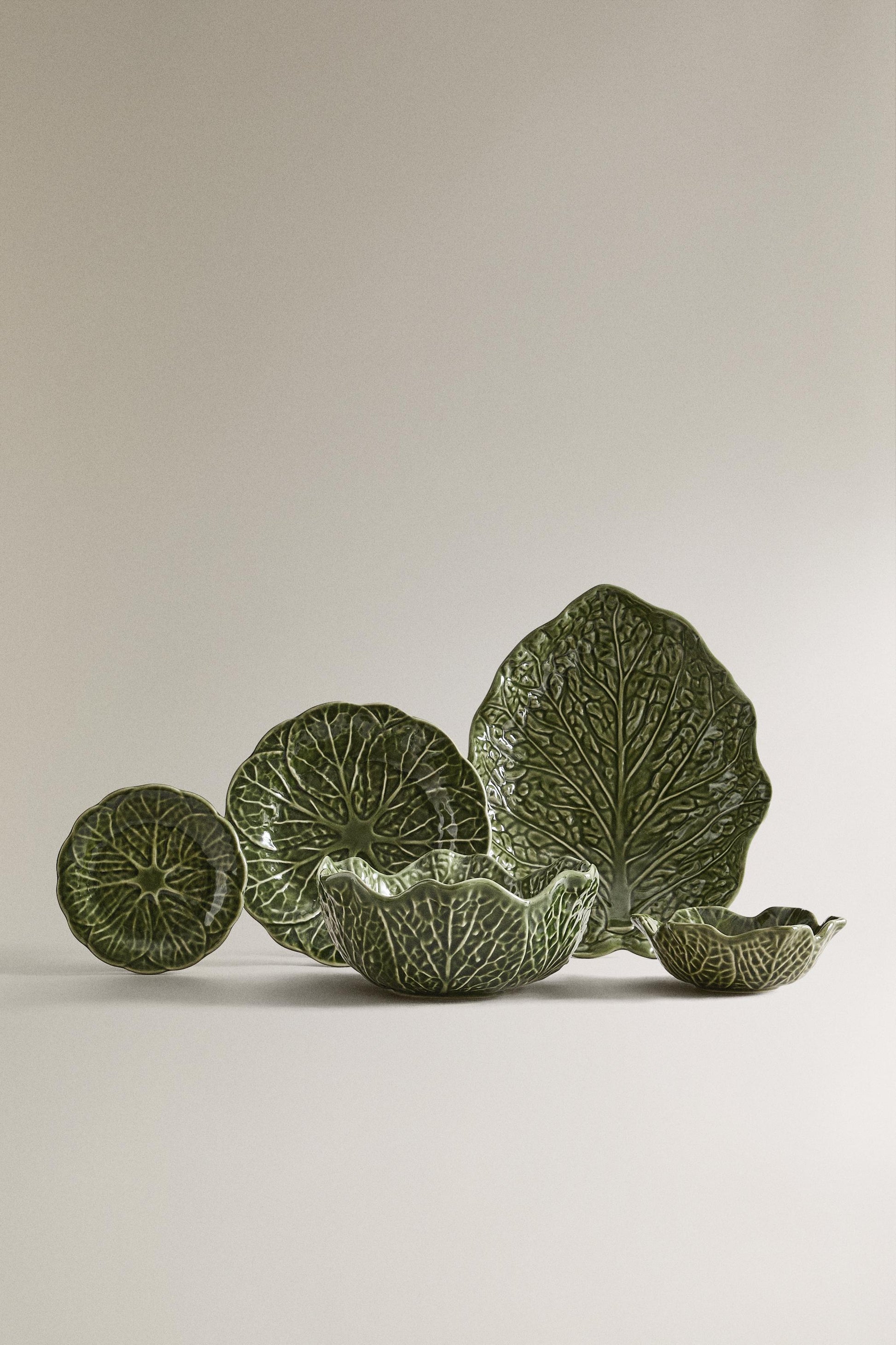 Serveware, side bowl, stoneware, green cabbage leaf, 6.1in