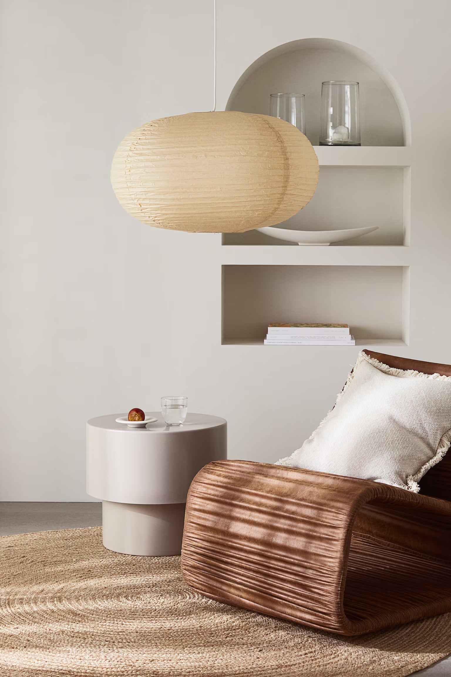 Side table in painted metal in a rounded shape. Suitable for indoor use. Height 15 3/4 in. Diameter at top 18 in. Weight: 18.8 lbs (8.53 kg). Supplied flat-packed, ready to assemble.