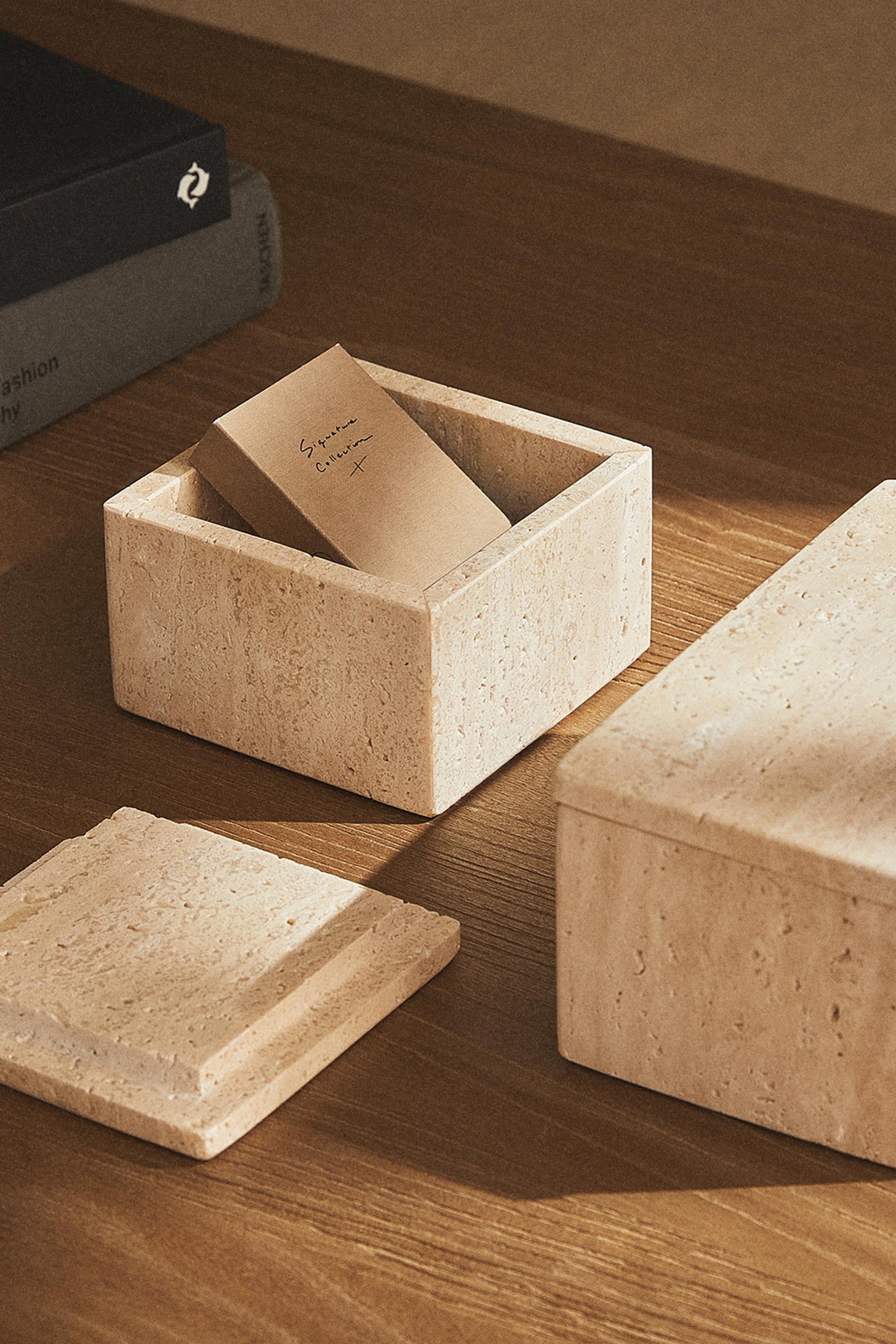 Square beige marble storage box for bathroom or decoration. 3.1 x 4.7 x 4.7 in (Height x Width x Depth).