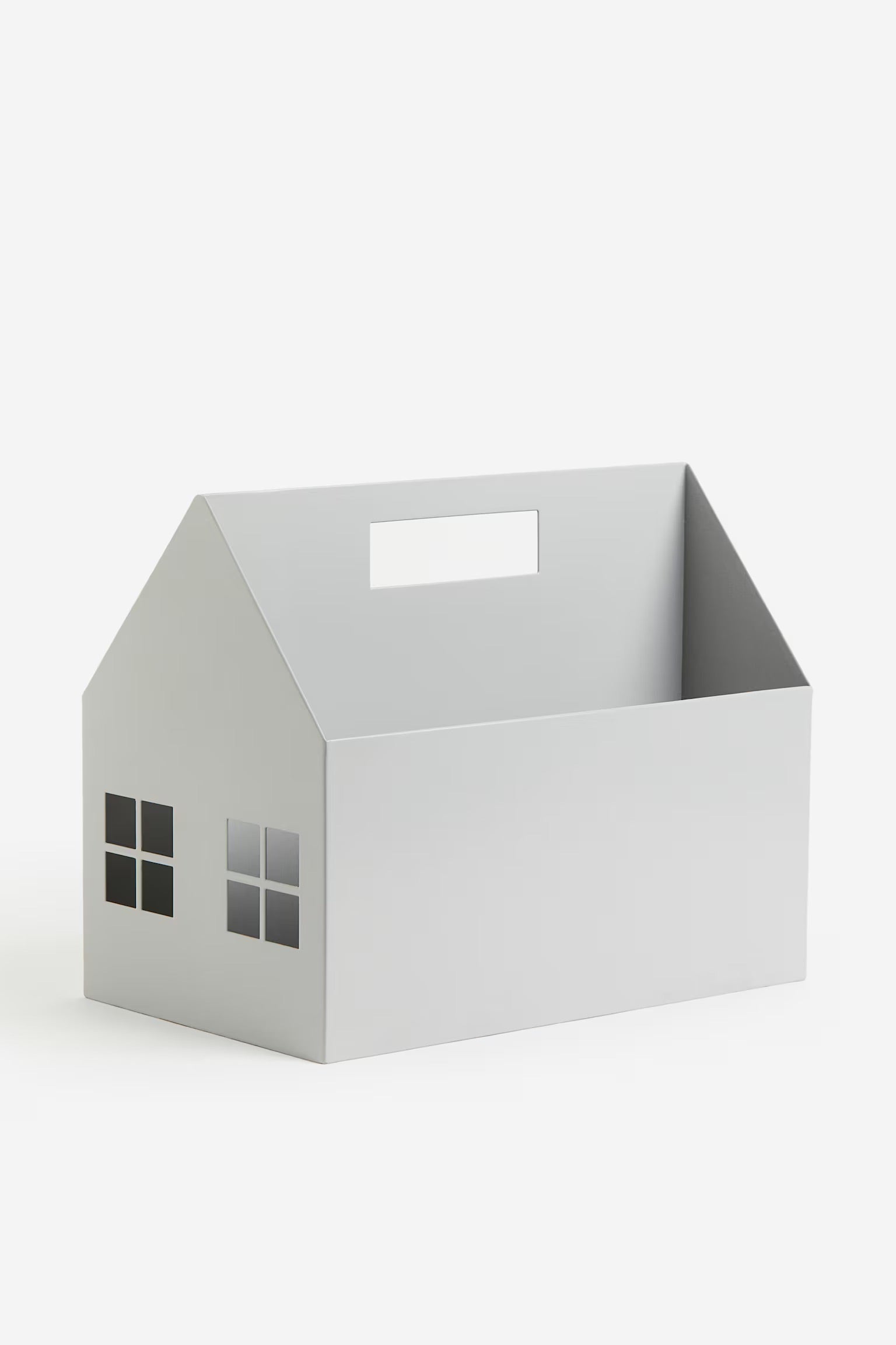 Organize your little one’s books with this house-shaped book storage container in metal that combines functionality with cuteness. Depth 8 3/4 in. Height 11 1/2 in. Length 14 1/4 in.